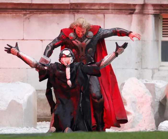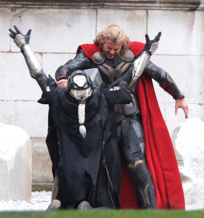 Vía Dan Mumford y Splash News Online nos llegan más imágenes y vídeos del rodaje de Thor: El Mundo Oscuro en Greenwich, Londres, aunque esta vez centrados en una pelea entre Thor (Chris Hemsworth) y Malekith el Maldito (Chris Eccleston).